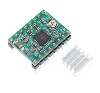 Модуль контролер крокового двигуна A4988 необхідний для точного керування двигуном, який перетворює імпульси мікроконтроллерного пристрою руху валу на заданий кут. Модуль дозволяє керувати біполярними двигунами із споживаним струмом номіналом 2 А на обмотку (із встановленим радіатором). Даний модуль використовується в розробках роботів або як двигун для 3D принтера (факсу). У магазині присутній покращений аналог контролера A4988 - драйвер DRV8825.