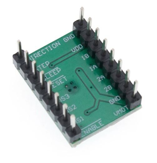 Підключається модуль до Arduino або інших мікропроцесорних пристроїв за допомогою 5 висновків. Для забезпечення логічного живлення на плату використовуються контакти RESET, SLEEP і GND, а для передачі сигналів для руху валу двигуна використовуються висновки STEP та DIR. Кроковий двигун підключається до модуля через контакти A1, B1, A2 та B2, а його живлення через висновки VMOT та GND.