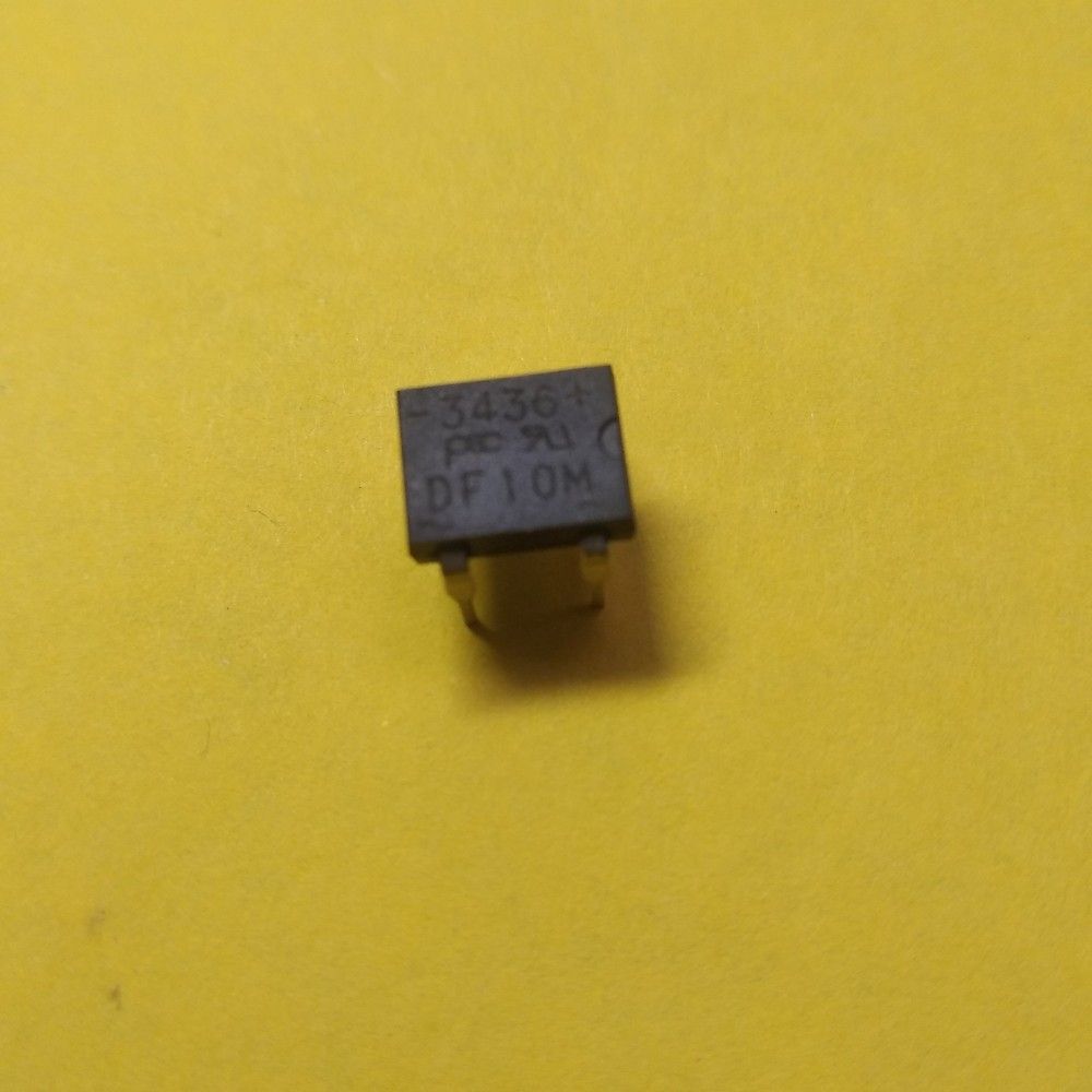 Діодні мости DF10M – однофазні двонапівперіодні перетворювачі змінного струму в пульсуючий (чотирьохдіодна схема Гретца) у ланцюгах з навантаженням до 1А та зворотною напругою до 1000В. На вхід схеми (позначається як "Input" або тильдою "~") подається змінний струм. У кожен із напівперіодів вхідний струм проходить лише через два діоди. В результаті, на виході (позначається як "DC Output" або значками "+" і "-") отримуємо струм, що пульсує з частотою вдвічі більше, ніж частота вхідного. Для згладжування отриманого пульсуючого струму використовують фільтр, найчастіше це конденсатор великої ємності. Діодні мости DF10M відрізняються високою імпульсною перевантажувальною здатністю та досить низьким прямим падінням напруги.