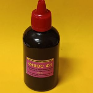Флюс для пайки Ф-1 в 100 мл – это универсальный бескислотный паяльный флюс на основе спирта (часто изопропилового), который используется для пайки печатных плат, контактов, стали и цинка.