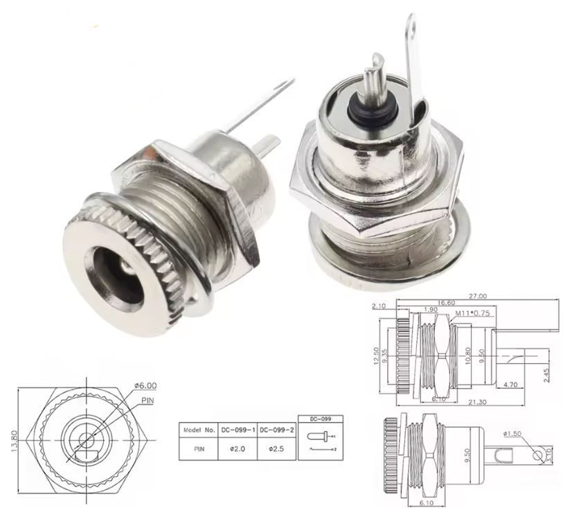 Гніздо живлення 5,5\2,1мм, монтажне, металеве, з гайкою