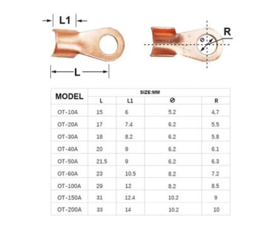 На кабель перетином 1.5 – 4мм2 (15 – 12AWG) під пайку або обтискання інструментом.