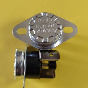Термостат KSD301 10A 250В 120°C з кнопкою (норм/замкн.,верт.контакти,неподв. фланець)