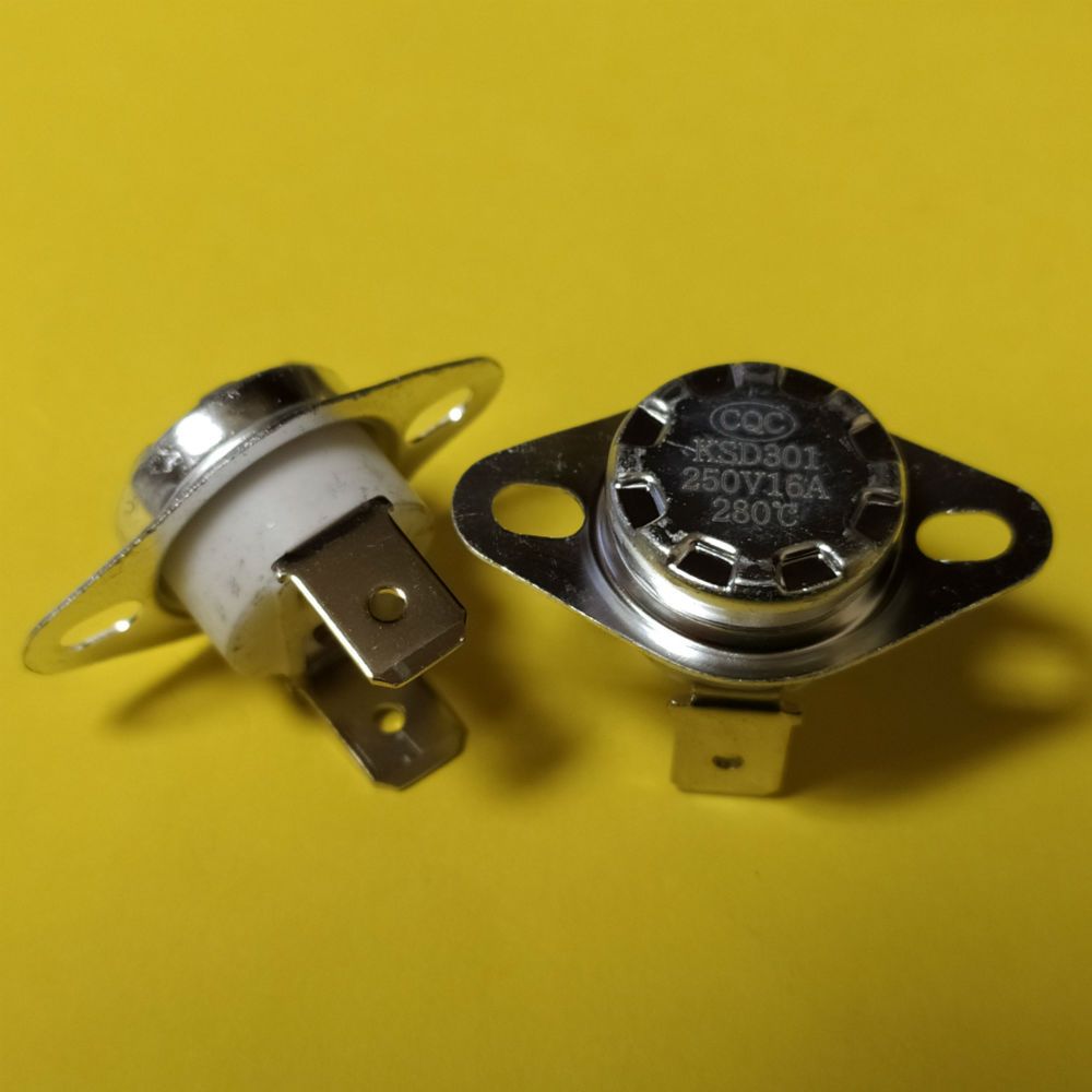Термостат серії KSD301 280°С 16A (норм/замкн., вертикальні контакти, нерухомий фланець, кераміка).