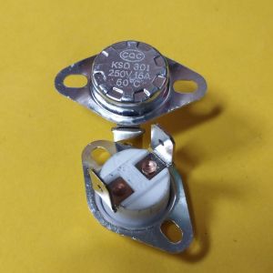 Термостат серії KSD301 60°С 16A (норм/замкн., вертикальні контакти, нерухомий фланець, кераміка) нерегульований нормально-замкнений керамічний термостат, з нерухомим фланцем і вертикальними контактами FBVL, біметалевий, з автовідновленням.