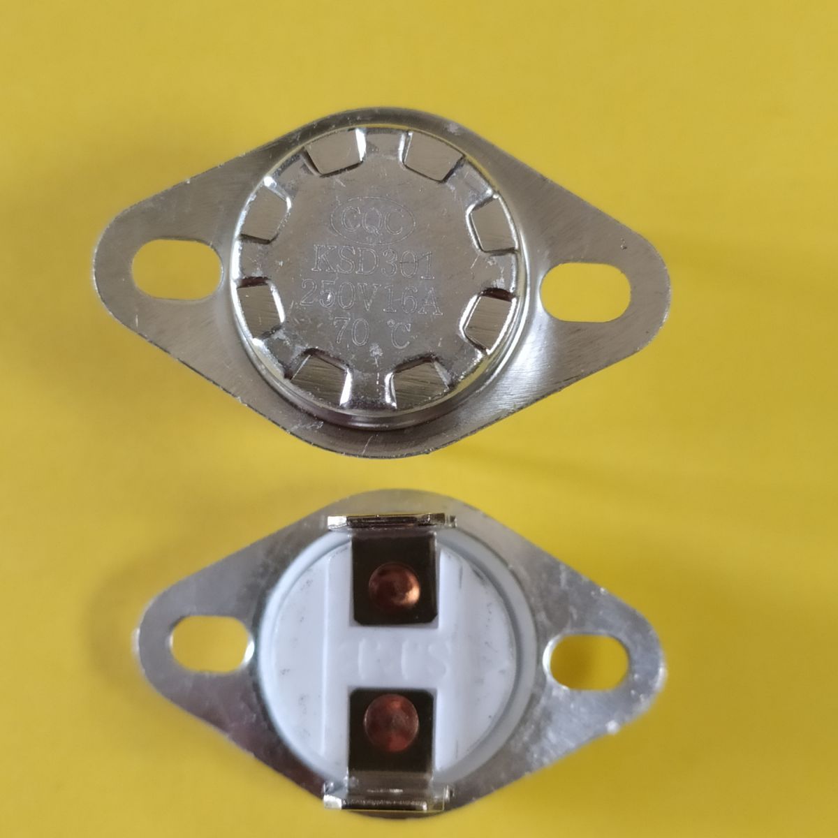 ТЕРМОСТАТ KSD301 70°С 16A (НОРМ/ЗАМКН., ВЕРТИКАЛЬНІ КОНТАКТИ, НЕРУХОВИЙ ФЛАНЕЦЬ, КЕРАМІКА, FBVL)
