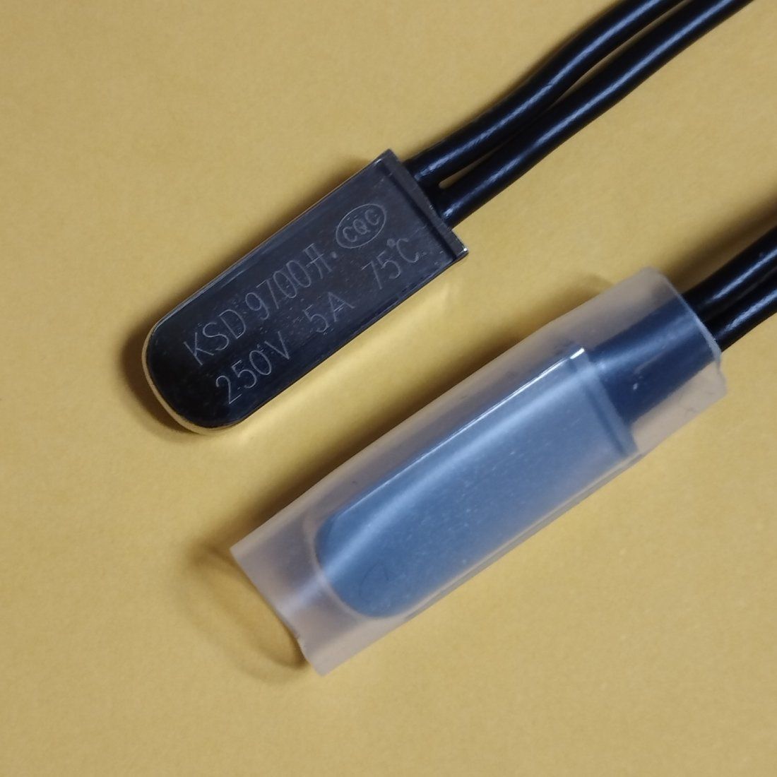 Термостати серії KSD9700 є металевим або пластиковим корпусом у вигляді паралелепіпеда (з металу або термопластика) з гнучкими висновками довжиною 70 мм. За оптового замовлення від 5000 штук висновки можна виготовити будь-якої необхідної довжини.