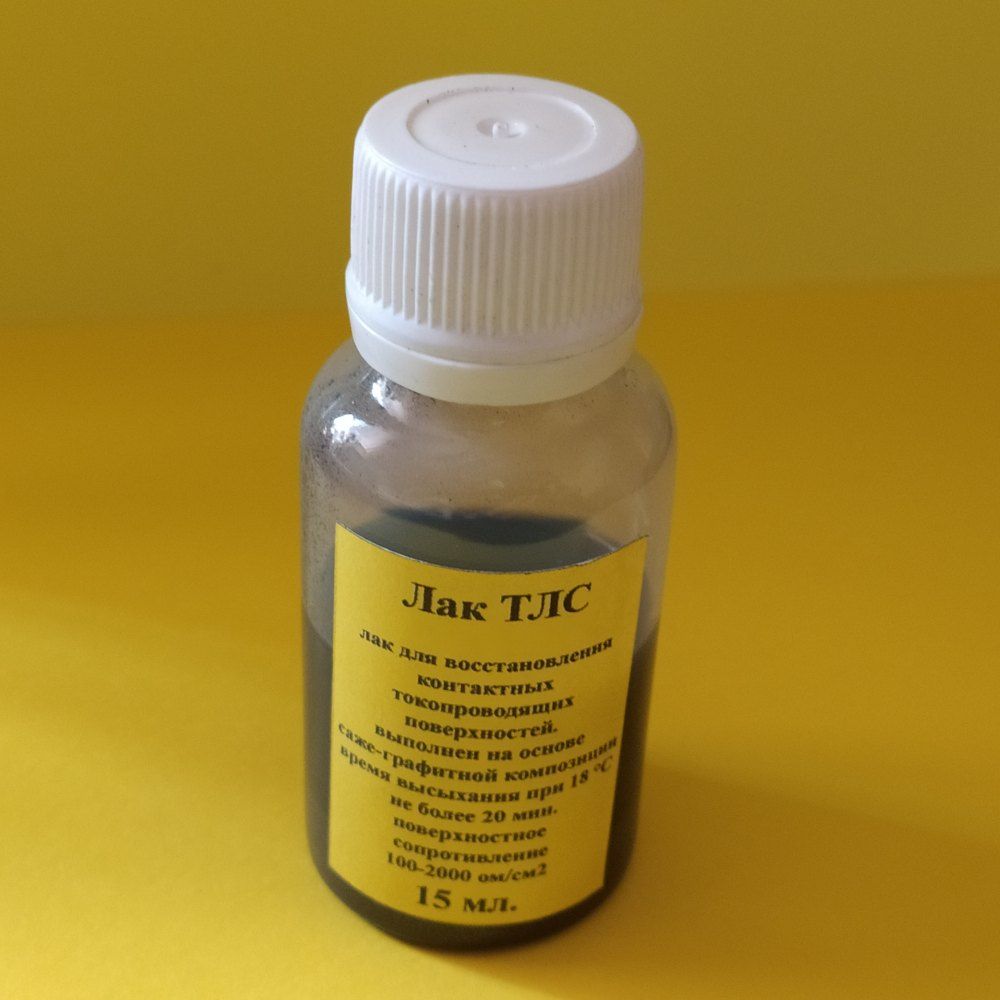 Струмопровідний лак ТЛС виготовлений на основі саже-графітової композиції.