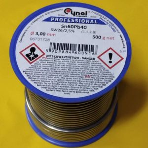 Припій CYNEL (Польща) Solder wire S-Sn60Pb40, flux SW26/3/2,5% Ø 3мм 0,5кг