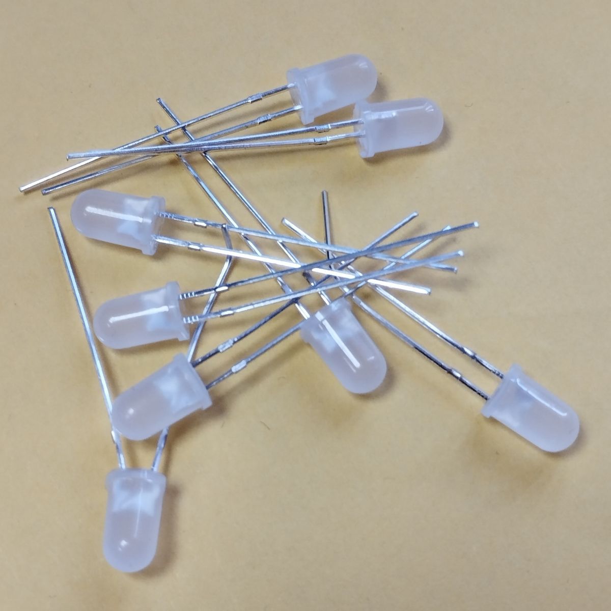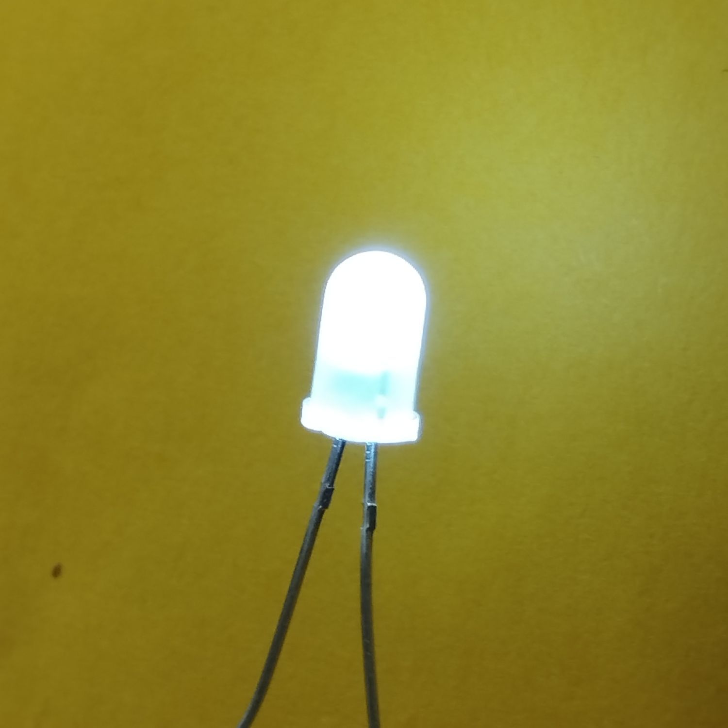 Вивідний круглий світлодіод, d=5 мм, матова біла лінза. Колір світіння білий 6000-8000 К. Кут випромінювання 60°. Сила світла Iv=3000-5000 мкд при If=20 мА. VF=3.0-3.3 В. Рекомендований постійний робочий максимальний струм 16-17 мА.
