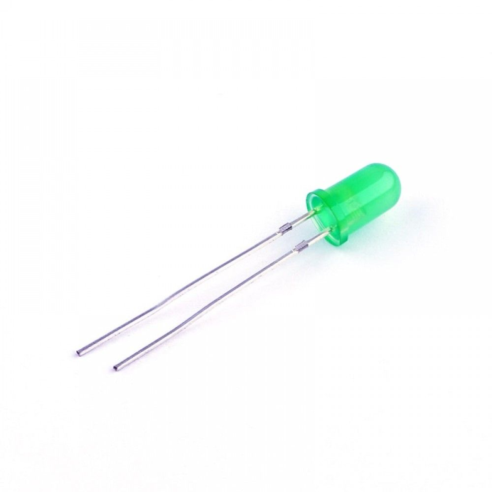 Светодиод 5мм 12В зелёный мигающий дифузная линза