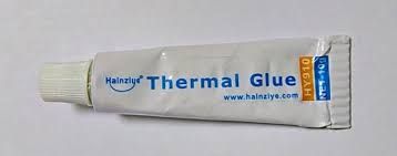 Теплопровідний клей силіконовий . Клей призначений для приклеювання невеликого розміру радіаторів на пристрої, від яких потрібно відвести тепло, за неможливості зафіксувати їх спеціальним кріпленням. Клей не призначений для приклеювання потужних радіаторних систем. При підсиханні термоклей добре проводить тепло та утримує елементи на своїх місцях.