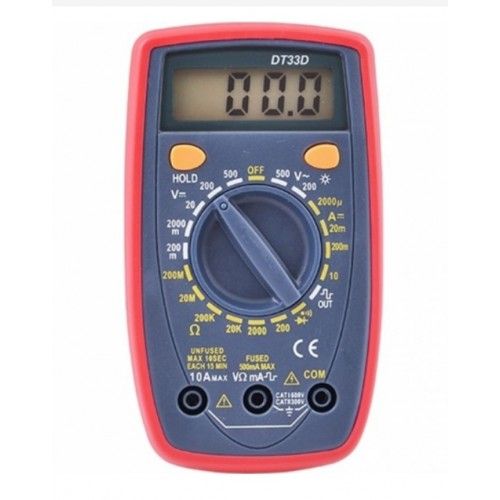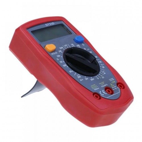 Цифровий мультиметр DT33D з підсвічуванням застосовується для вимірювання постійної, змінної напруги, постійного струму, опору, перевірки діодів, продзвонювання ланцюга. Оснащений функцією утримання даних та іншими можливостями. Корпус прогумований з ударостійким чохлом.